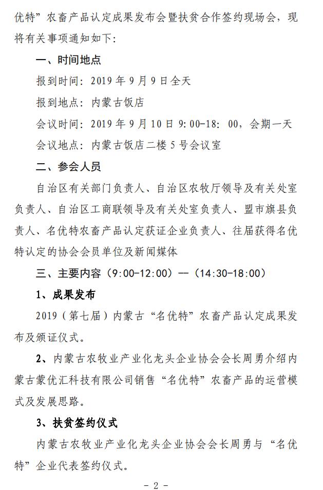 關(guān)于召開(kāi)2019(第七屆)內(nèi)蒙古“名優(yōu)特”農(nóng)畜產(chǎn)品認(rèn)定成果發(fā)布會(huì)暨扶貧合作簽約現(xiàn)場(chǎng)會(huì)的通知
