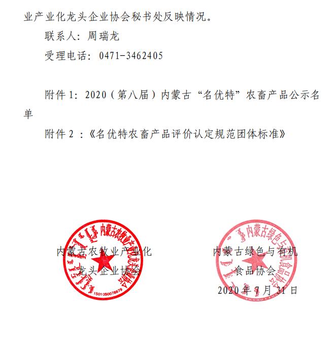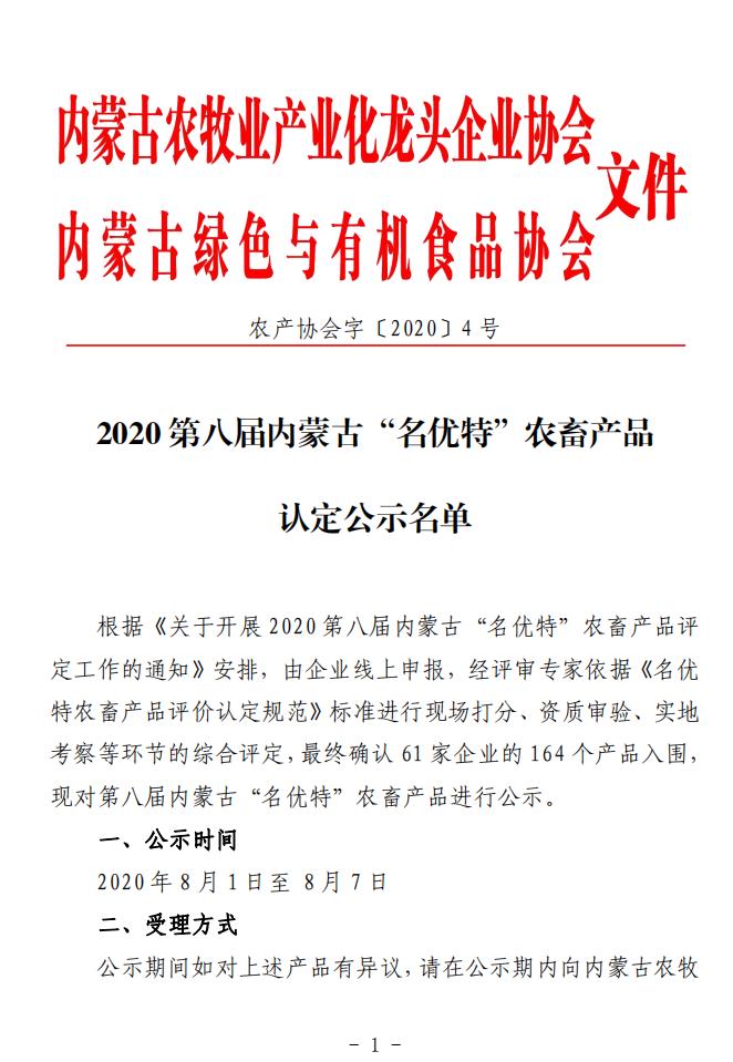 標題:2020第八屆內(nèi)蒙古“名優(yōu)特”農(nóng)畜產(chǎn)品認定公示名單