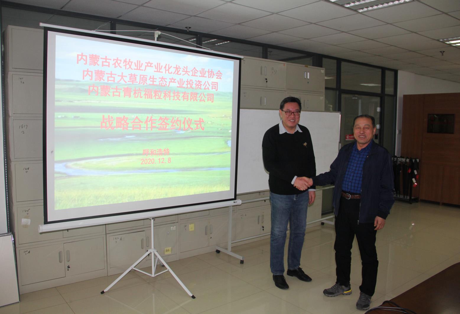 2020年12月8日,內(nèi)蒙古農(nóng)牧業(yè)產(chǎn)業(yè)化龍頭企業(yè)協(xié)會執(zhí)行會長林永亮一行到內(nèi)蒙古青杭福??萍加邢薰窘涣骺疾?,并與大草原生態(tài)產(chǎn)業(yè)投資有限公司董事長李剛簽署戰(zhàn)略合作協(xié)議。