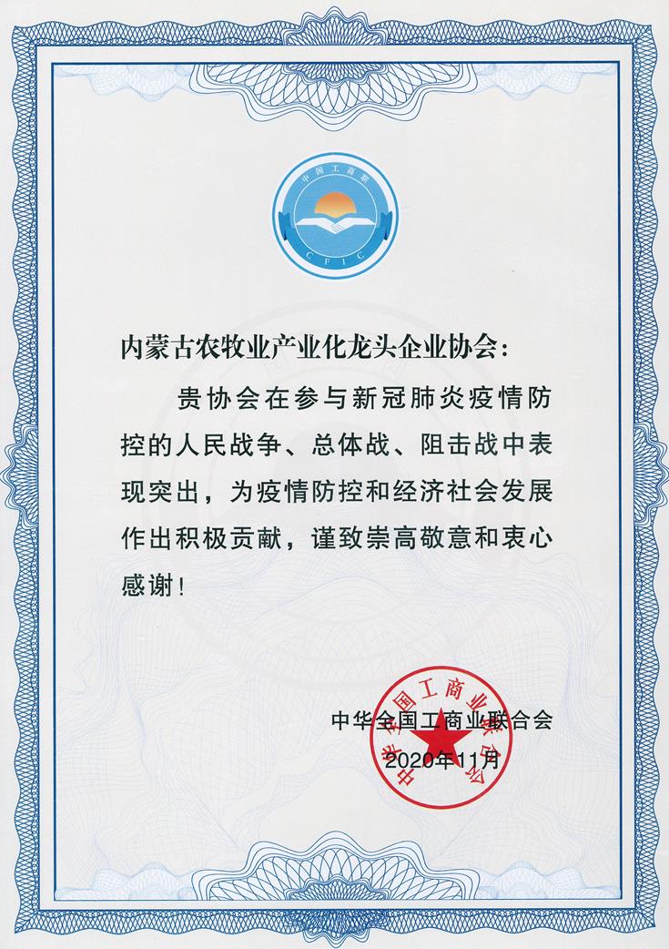 在抗擊新冠肺炎疫情過程中,內(nèi)蒙古農(nóng)牧業(yè)產(chǎn)業(yè)化龍頭企業(yè)協(xié)會把疫情防控作為重大政治任務(wù),堅決貫徹落實習近平總書記重要指示精神和黨中央、自治區(qū)決策部署,立足自身優(yōu)勢,主動擔當作為,統(tǒng)籌做好疫情防控和復(fù)工復(fù)產(chǎn),為統(tǒng)籌推進疫情防控和經(jīng)濟社會發(fā)展取得階段性勝利做出了重要貢獻。
