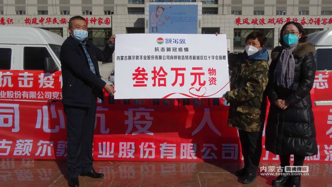 26、常務(wù)理事單位-內(nèi)蒙古額爾敦羊業(yè)股份有限公司:3月2日,內(nèi)蒙古額爾敦羊業(yè)股份有限公司在新城區(qū)政府廣場舉行抗疫生活物資捐贈儀式,向呼和浩特新城區(qū)紅十字會捐贈三十萬元牛羊肉制品,用實(shí)際行動傳遞力量與溫暖。
