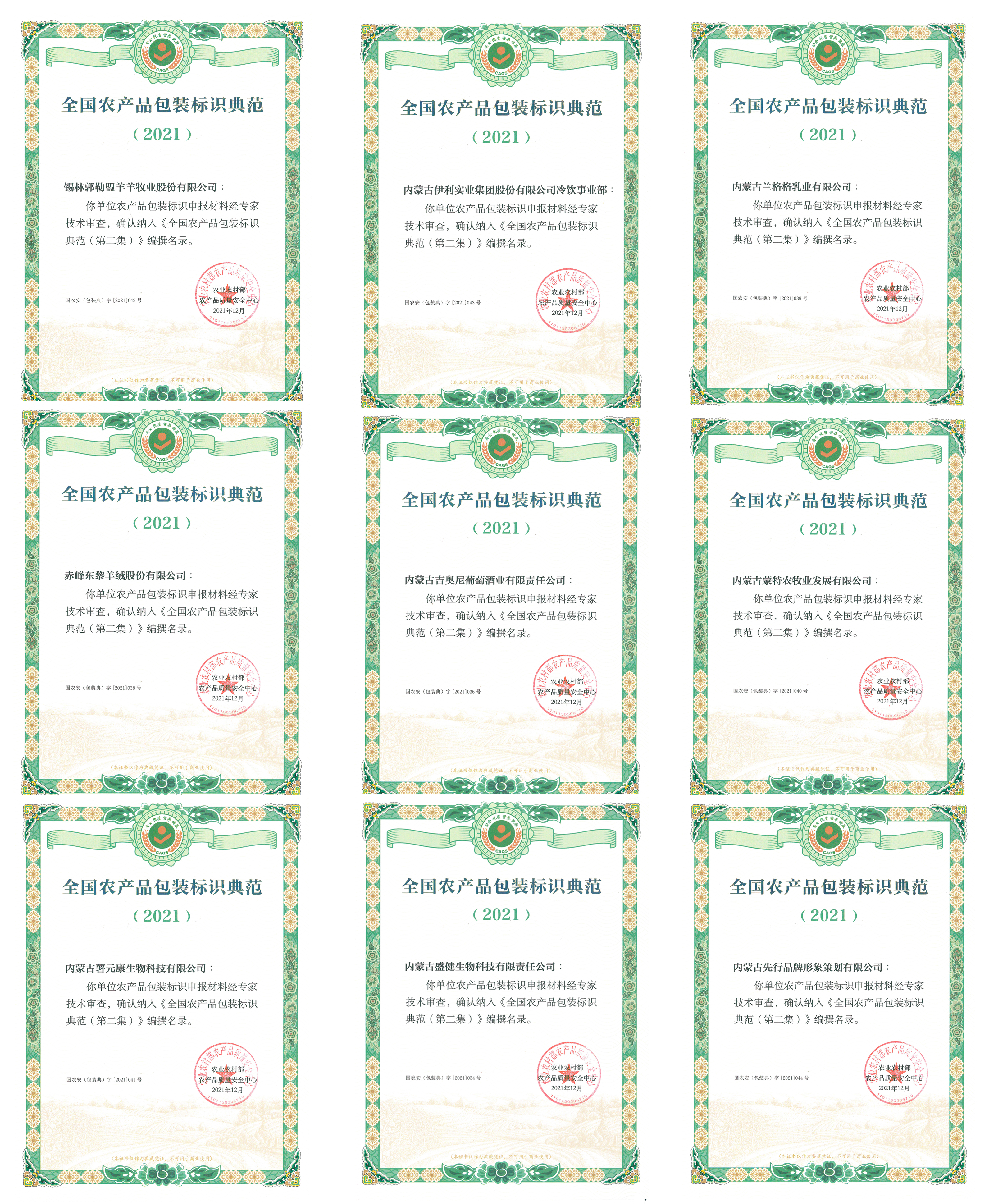 為幫助企業(yè)樹立品牌意識,逐步提升我區(qū)農(nóng)畜產(chǎn)品的包裝水平和檔次,在內(nèi)蒙古自治區(qū)農(nóng)畜產(chǎn)品質(zhì)量安全中心的指導下,內(nèi)蒙古農(nóng)牧業(yè)產(chǎn)業(yè)化龍頭企業(yè)協(xié)會、內(nèi)蒙古綠色與有機食品協(xié)會已于2021年10月,順利完成“第六屆內(nèi)蒙古包裝設計競賽”的評選和表彰工作。為了更好的宣傳展示內(nèi)蒙古優(yōu)質(zhì)農(nóng)畜產(chǎn)品的品牌形象,由內(nèi)蒙古自治區(qū)農(nóng)畜產(chǎn)品質(zhì)量安全中心推薦,經(jīng)國家農(nóng)安中心組織專家評審,有9家經(jīng)協(xié)會評選的包裝設計企業(yè)成功納入《2021年全國農(nóng)產(chǎn)品包裝標識典范名錄》。據(jù)了解,入選目錄的企業(yè),經(jīng)授權,可以在審定的包裝上使用其中心標識。