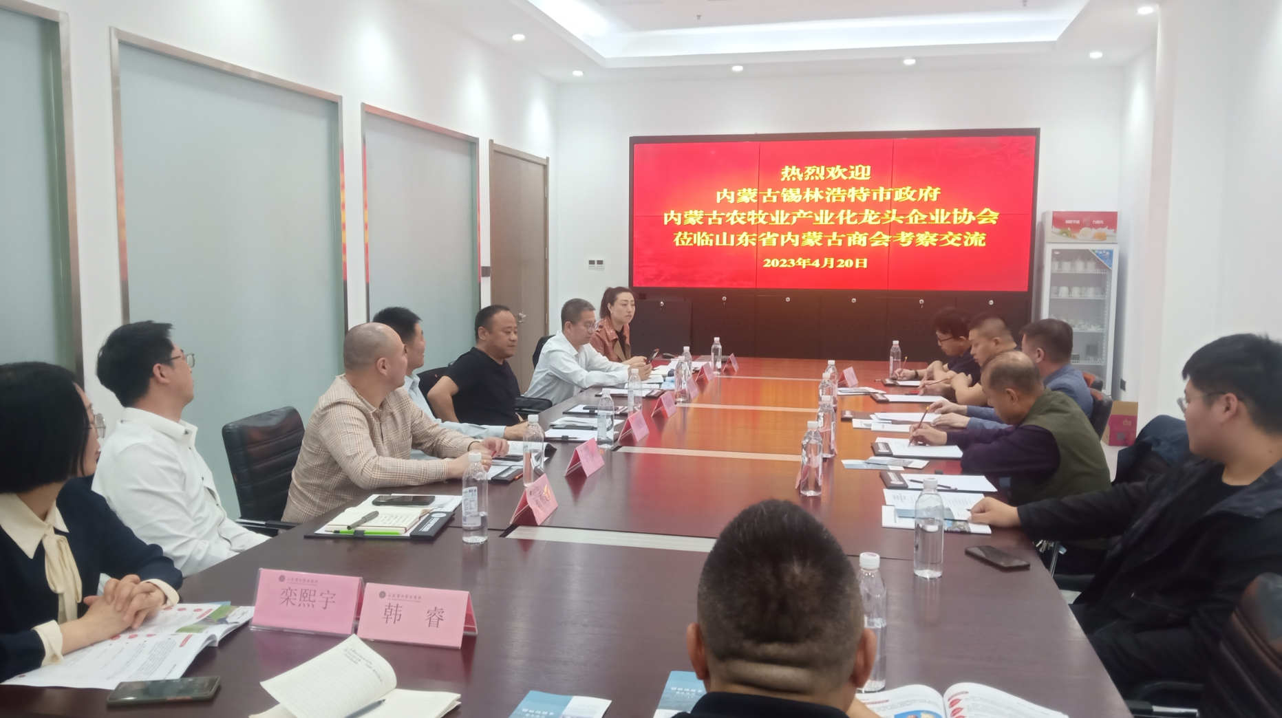4月20日下午,內(nèi)蒙古農(nóng)牧業(yè)產(chǎn)業(yè)化龍頭企業(yè)協(xié)會執(zhí)行會長林永亮、副秘書長周瑞龍,內(nèi)蒙古錫林浩特市政府副市長陶力古爾,錫林浩特市農(nóng)牧和科技局干部代勤、吳圖布信一行到山東內(nèi)蒙古商會座談交流。山東省內(nèi)蒙古商會會長韓振濤,副會長馬銀剛,支部書記高志宏,副會長兼秘書長侯羨暉,副秘書長、青島市呼倫貝爾商會副會長兼秘書長郭峰,會員孫秀超,招商聯(lián)絡處主任賈曼及秘書處工作人員參加會議。