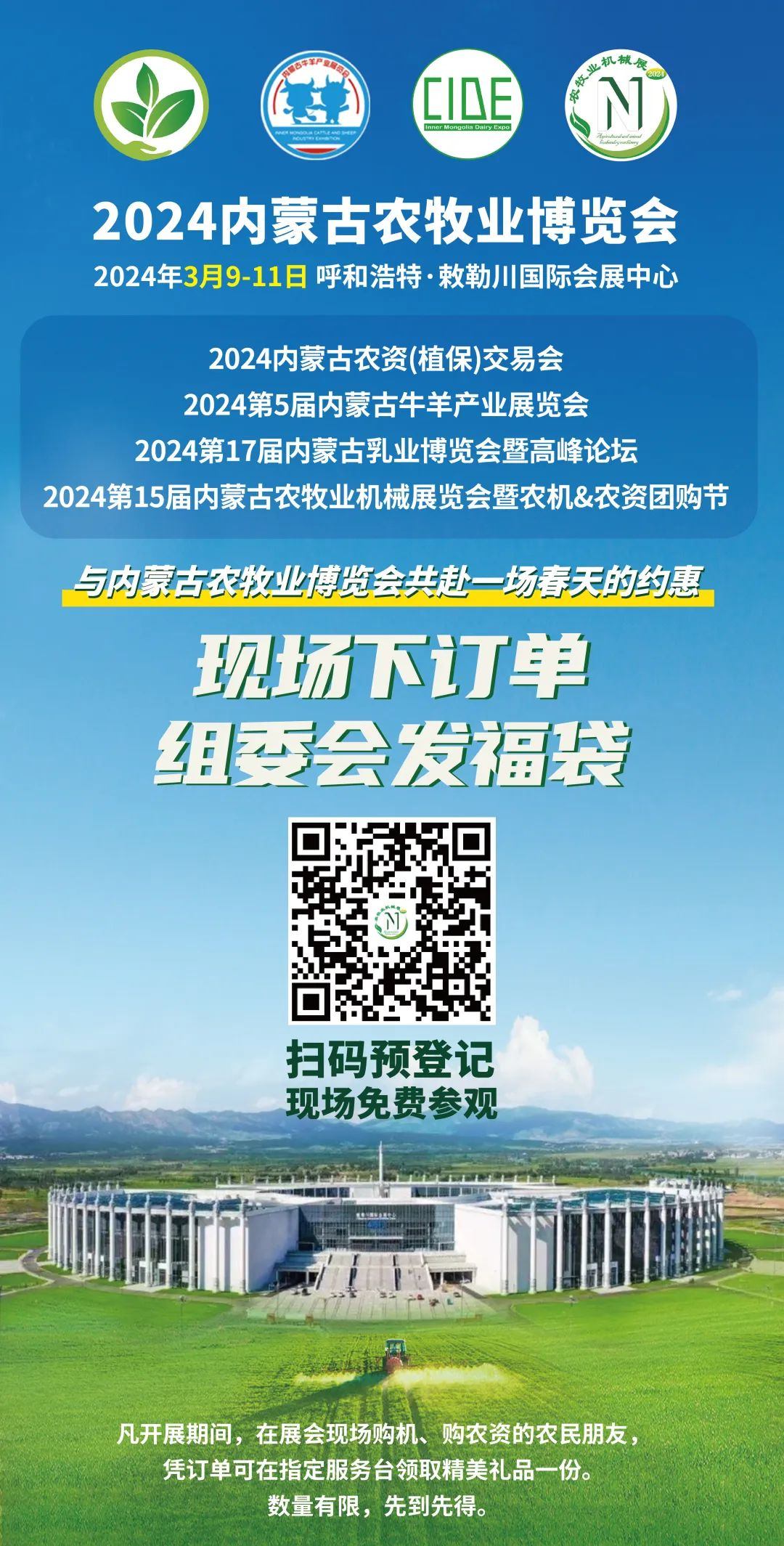 本次展會(huì)由艾克思博國際會(huì)展集團(tuán),內(nèi)蒙古農(nóng)牧業(yè)產(chǎn)業(yè)化龍頭企業(yè)協(xié)會(huì)、上海博朝展覽服務(wù)有限公司聯(lián)合舉辦,大會(huì)同期還將舉辦2024內(nèi)蒙古農(nóng)牧業(yè)博覽會(huì)、2024第17屆內(nèi)蒙古乳業(yè)博覽會(huì)暨高峰論壇、2024第5屆內(nèi)蒙古牛羊產(chǎn)業(yè)展覽會(huì)、2024內(nèi)蒙古農(nóng)資(植保)交易會(huì),今年展會(huì)整體規(guī)模更大、產(chǎn)品更加豐富,展品從農(nóng)機(jī)裝備、牛羊養(yǎng)殖、乳品工業(yè)、農(nóng)資植保乃至品牌終端,覆蓋農(nóng)牧業(yè)全產(chǎn)業(yè)鏈高端人脈,充分滿足農(nóng)牧民朋友的采購需求。如您有一站式采購需求,請(qǐng)一定不要錯(cuò)過本場(chǎng)行業(yè)盛會(huì)。
