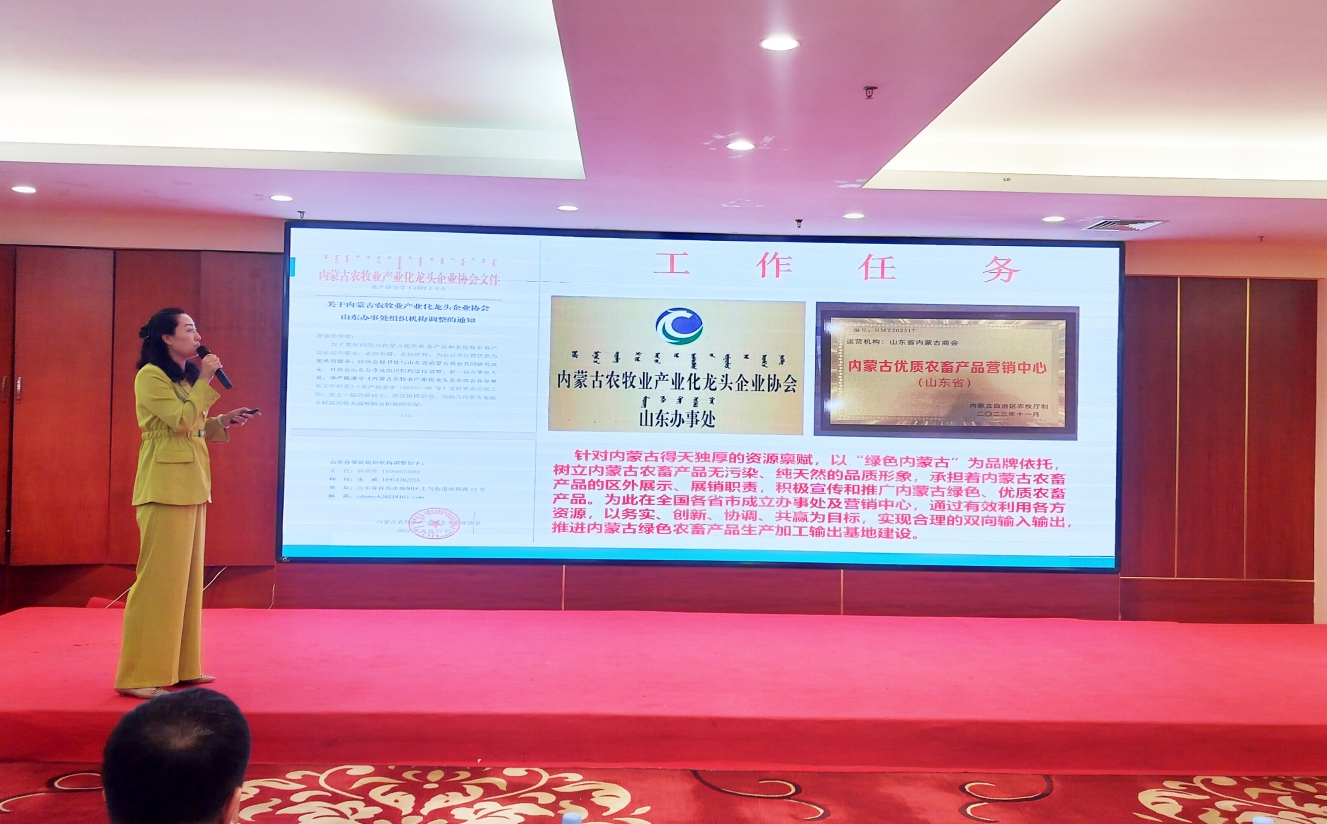 2025年5月21日上午,內(nèi)蒙古農(nóng)牧業(yè)產(chǎn)業(yè)化龍頭企業(yè)協(xié)會第五屆第一次會員代表大會暨第一次理事會在呼和浩特市職工之家四樓如意廳順利召開。自治區(qū)農(nóng)牧廳(鄉(xiāng)村振興局)黨組成員、副廳長海山,自治區(qū)民政廳社會組織管理和執(zhí)法監(jiān)督局副局長陸鴻雁,自治區(qū)工商業(yè)聯(lián)合會黨組成員、副主席白春艷,自治區(qū)黨委社會工作部二處處長、一級調(diào)研員格日樂圖,自治區(qū)農(nóng)牧業(yè)科學(xué)院副院長崔茂盛,自治區(qū)農(nóng)牧業(yè)技術(shù)推廣中心鄉(xiāng)村產(chǎn)業(yè)推進(jìn)處處長張福柱,自治區(qū)商務(wù)廳流通業(yè)發(fā)展處主任科員陳星等相關(guān)部門負(fù)責(zé)人出席會議。內(nèi)蒙古農(nóng)牧業(yè)產(chǎn)業(yè)化龍頭企業(yè)協(xié)會第四屆理事會會長周勇、第五屆理事會會長徐建忠參加會議。會議應(yīng)到251人,實到183人,符合法定人數(shù)。會議由協(xié)會秘書長呼群主持。
