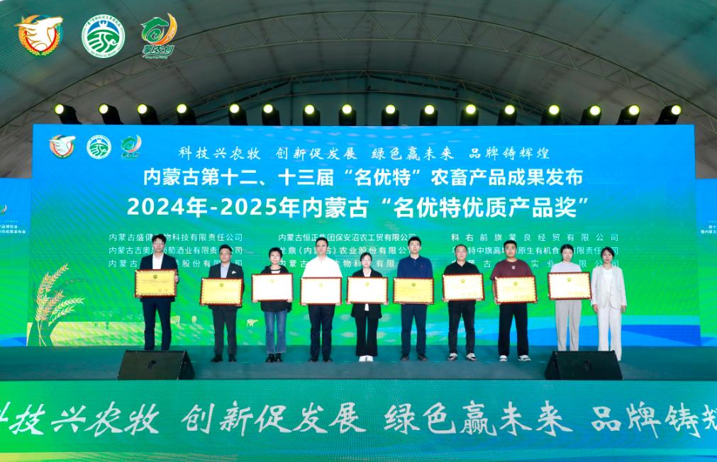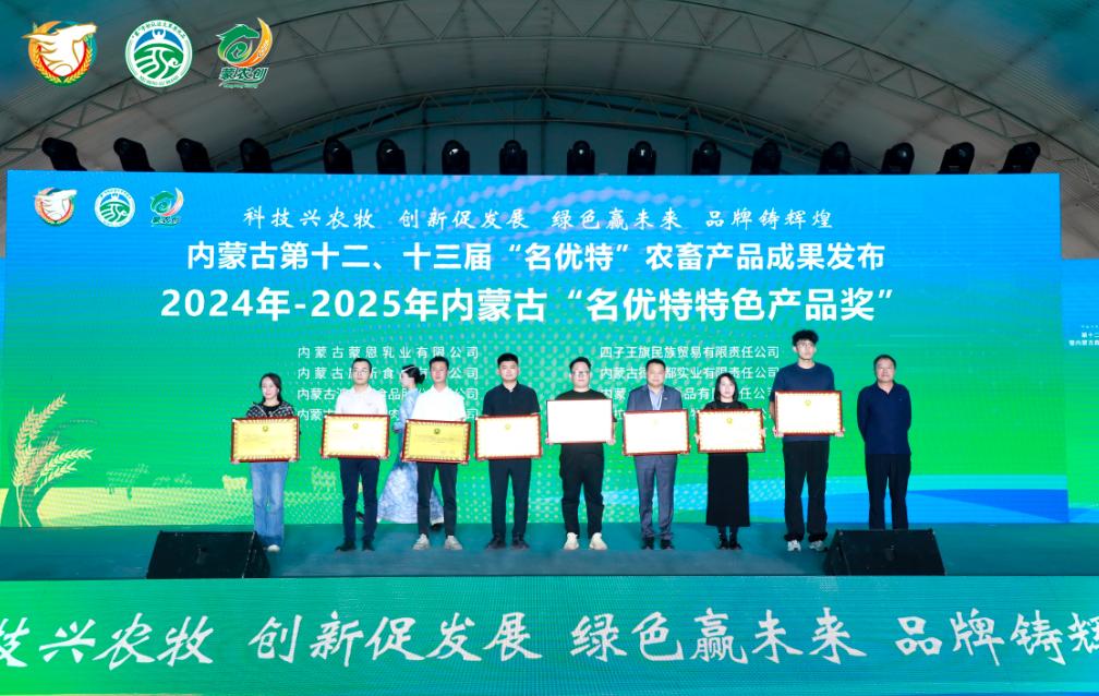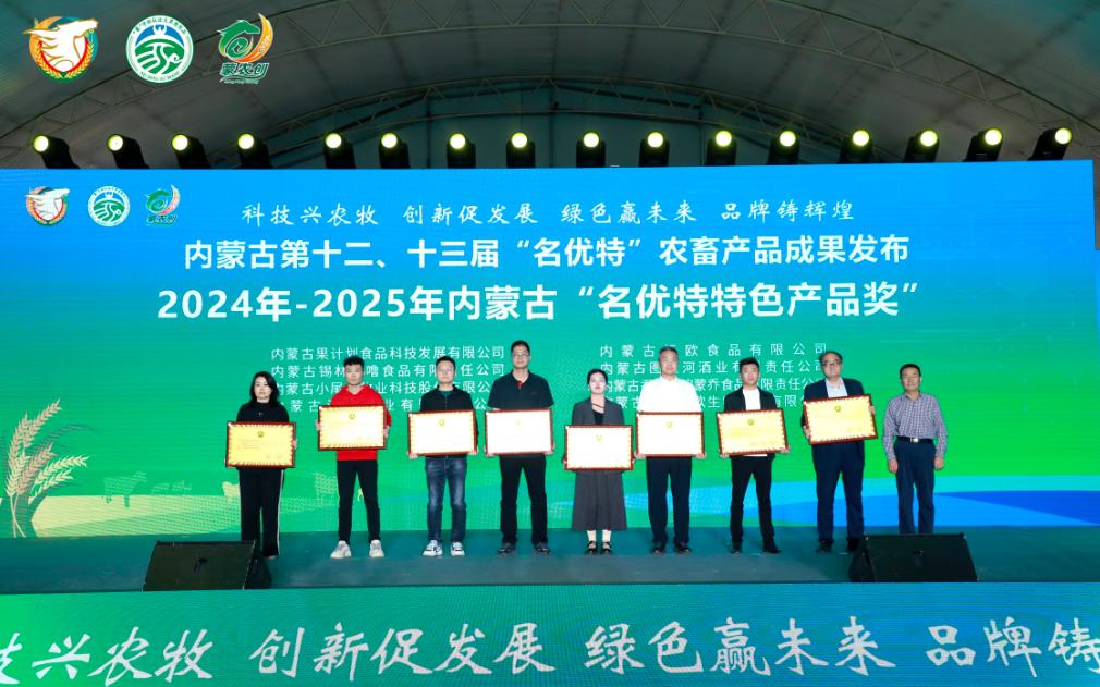 發(fā)布會上自治區(qū)農(nóng)牧廳二級巡視員侯雁冰、畜牧局局長紅海、自治區(qū)人民政府駐上海辦事處黨組書記、主任李志剛、自治區(qū)農(nóng)牧廳鄉(xiāng)村產(chǎn)業(yè)發(fā)展和農(nóng)墾處處長邢瑞、農(nóng)畜產(chǎn)品質(zhì)量安全中心副主任云巖春、協(xié)會會長徐建忠、內(nèi)蒙古綠色與有機食品協(xié)會常務副會長、高級顧問邢黎明為獲得第十二、十三屆名優(yōu)特認證的企業(yè)頒發(fā)獎牌并合影留念。