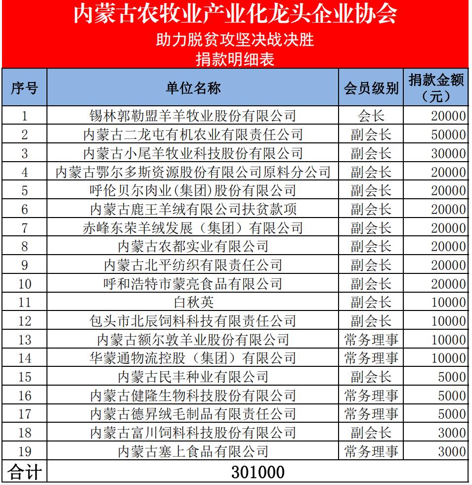 2020年,是全面建成小康社會目標(biāo)實現(xiàn)之年,是全面打贏脫貧攻堅戰(zhàn)收官之年,更是產(chǎn)業(yè)扶貧工作至關(guān)重要的一年,抓好此項工作責(zé)任重大、意義重大。受新冠肺炎疫情的影響,產(chǎn)業(yè)扶貧工作也必將會遇到新的挑戰(zhàn),時間緊、任務(wù)重,內(nèi)蒙古農(nóng)牧業(yè)產(chǎn)業(yè)化龍頭企業(yè)協(xié)會在內(nèi)蒙古自治區(qū)農(nóng)牧廳的指導(dǎo)下,克服困難、精心策劃、認(rèn)真研究、取長補(bǔ)短,持續(xù)抓好今年的幫扶工作,確保成效。
