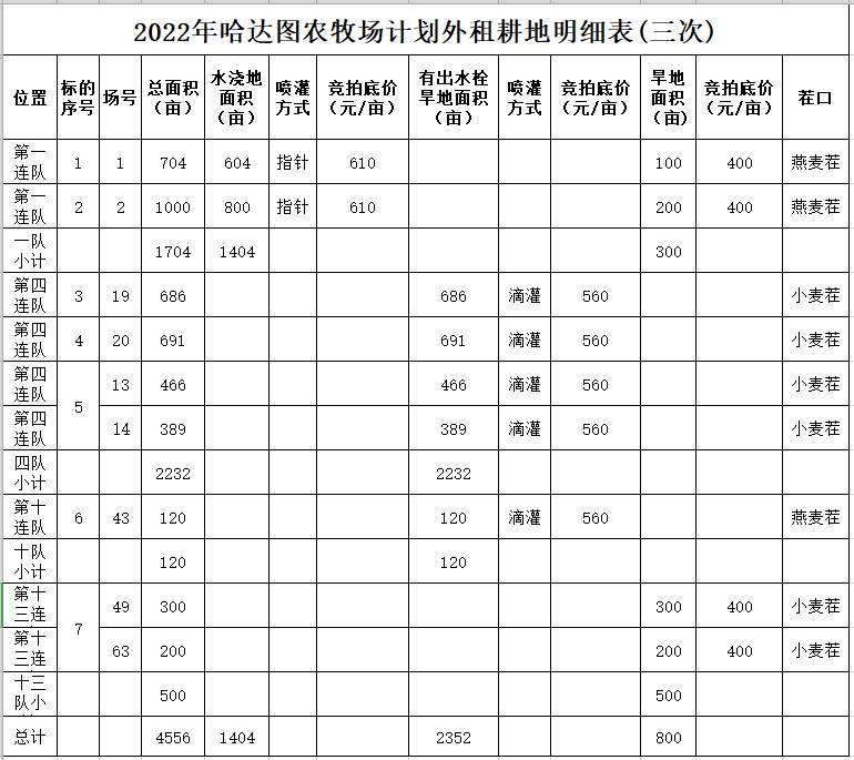 6.掛牌價(jià):見明細(xì)表(掛牌價(jià)為每畝耕地應(yīng)當(dāng)支付的租賃底價(jià))