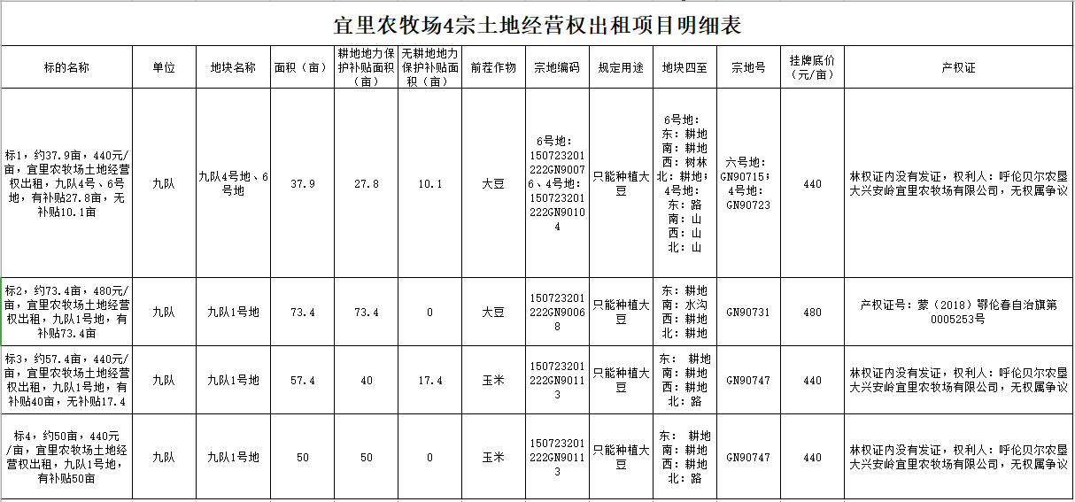 項目一:呼倫貝爾農(nóng)墾免渡河農(nóng)牧場有限公司26耕地經(jīng)營權(quán)出租項目
