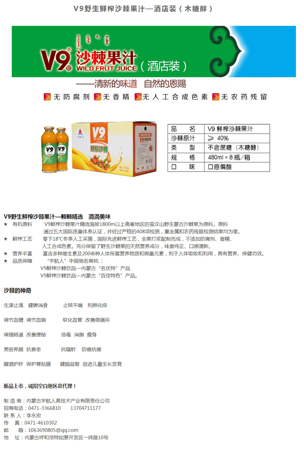 產(chǎn)品名稱:V9野生鮮榨沙棘果汁—酒店裝(木糖醇)