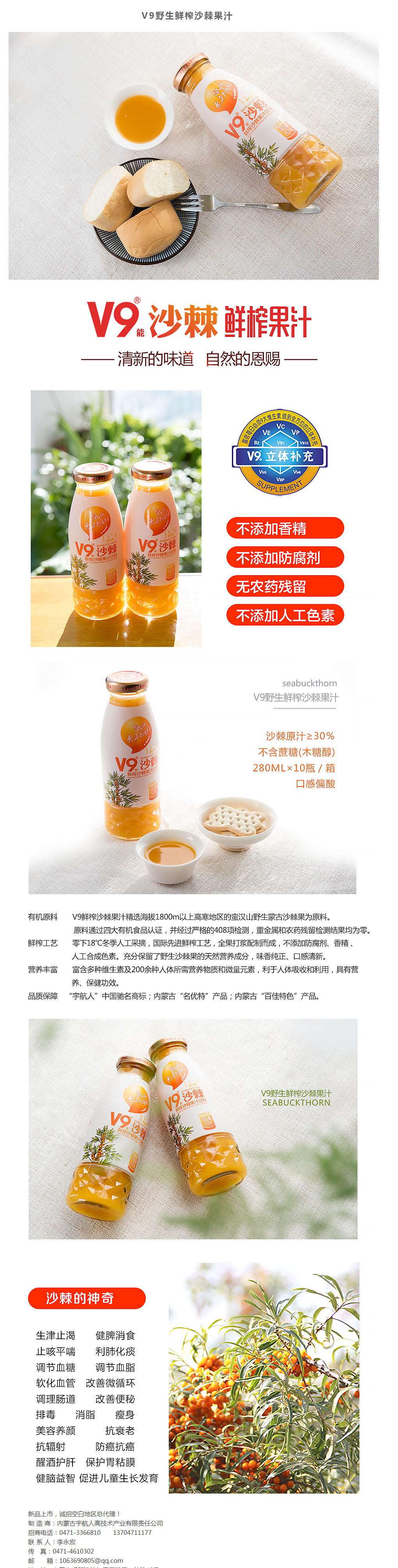 產(chǎn)品名稱:V9野生鮮榨沙棘果汁