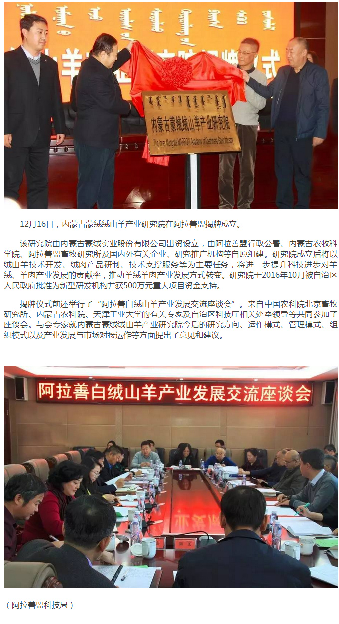 內(nèi)蒙古蒙絨絨山羊產(chǎn)業(yè)研究院在阿拉善盟揭牌成立