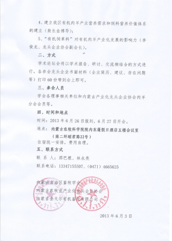 關(guān)于舉辦首屆內(nèi)蒙古有機肉羊產(chǎn)業(yè)經(jīng)濟發(fā)展學術(shù)論壇會的通知