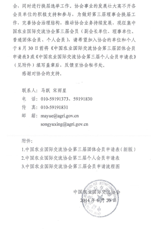 轉(zhuǎn)發(fā)關于征集中國農(nóng)業(yè)國際交流協(xié)會第三屆會員的函