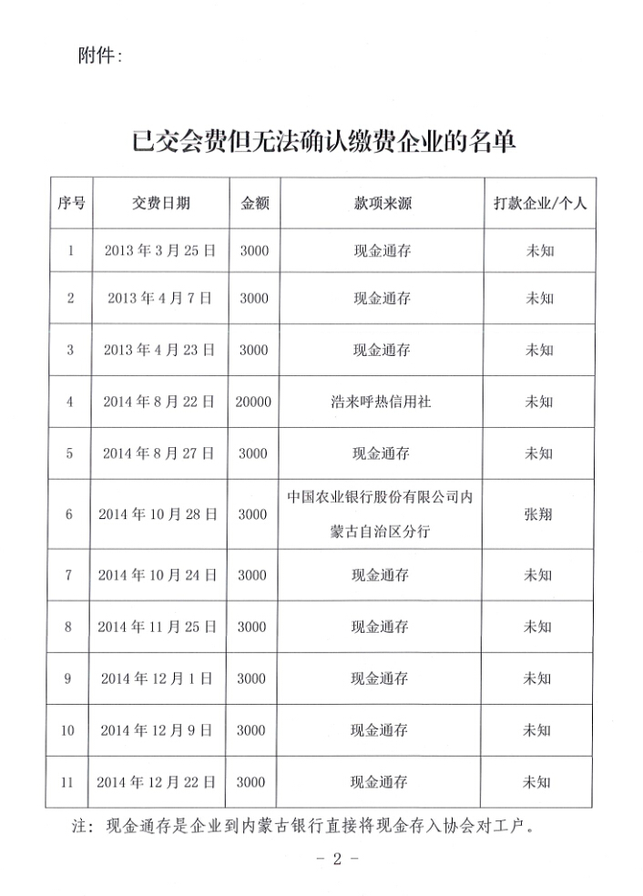 關(guān)于公布協(xié)會部分已交會費但無法確認繳費企業(yè)的名單的通知