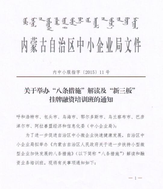 關(guān)于組織會(huì)員單位參加“八條措施”解讀及“新三板”掛牌融資培訓(xùn)班的通知