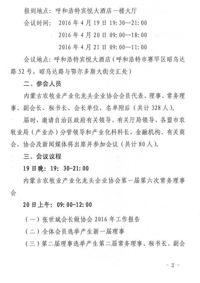關(guān)于召開內(nèi)蒙古農(nóng)牧業(yè)產(chǎn)業(yè)化龍頭企業(yè)協(xié)會(huì)第二屆第一次理事會(huì)暨會(huì)員代表大會(huì)的通知