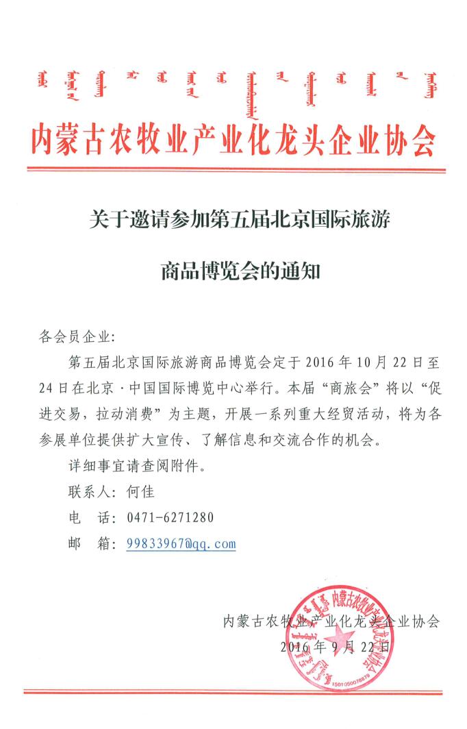 關(guān)于邀請(qǐng)參加第五屆北京國(guó)際旅游商品博覽會(huì)的通知