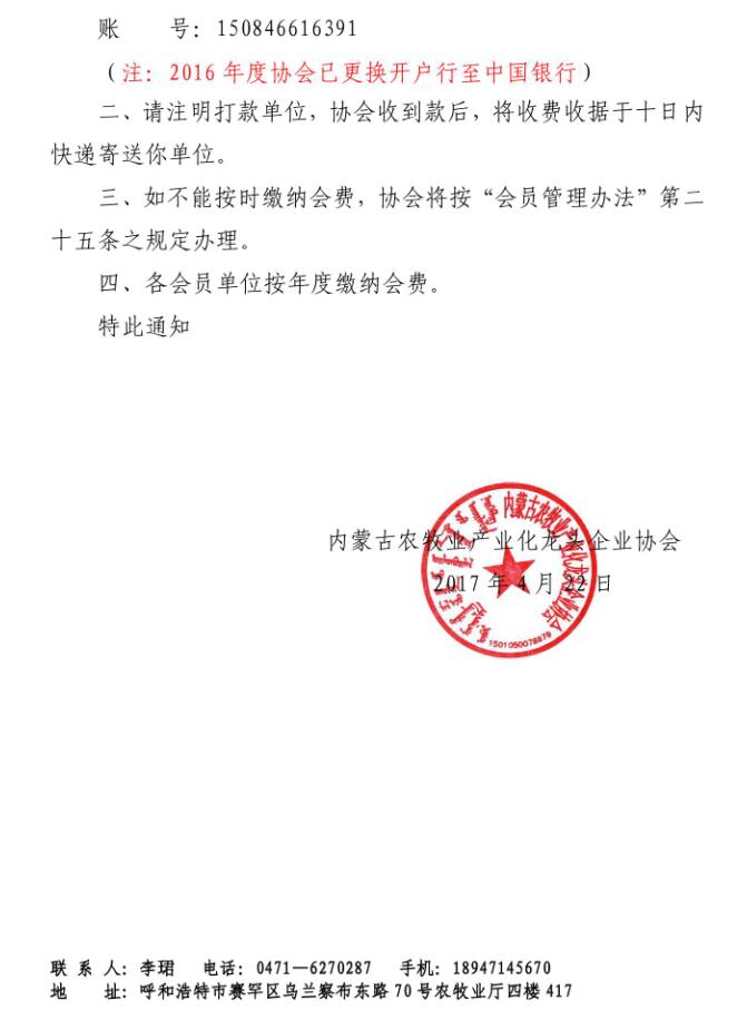 關(guān)于收繳會(huì)費(fèi)的通知【2017】8號(hào)