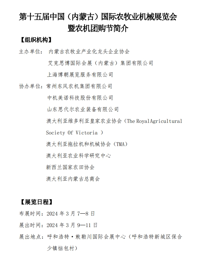 關(guān)于召開“2024年第十五屆中國(內(nèi)蒙古)國際農(nóng)牧業(yè)機(jī)械展覽會”通知