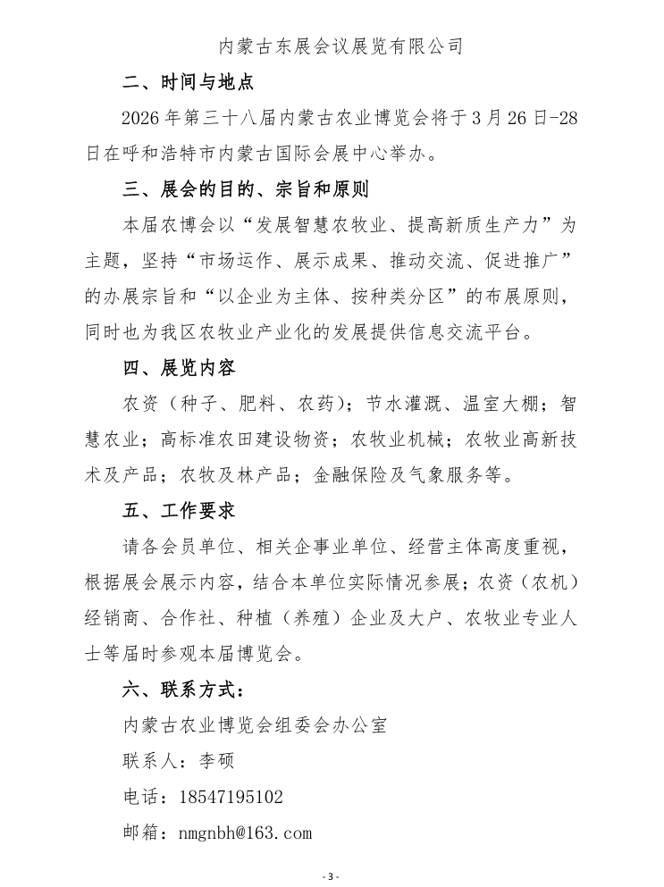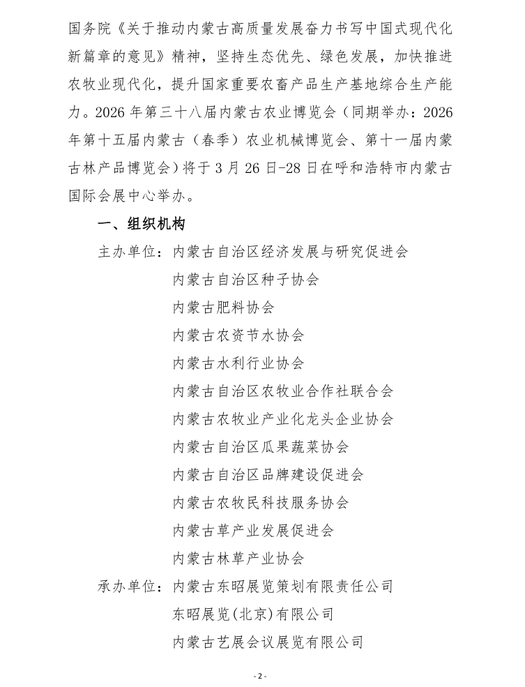 關(guān)于舉辦2026年第三十八屆內(nèi)蒙古農(nóng)業(yè)博覽會(huì)的通知