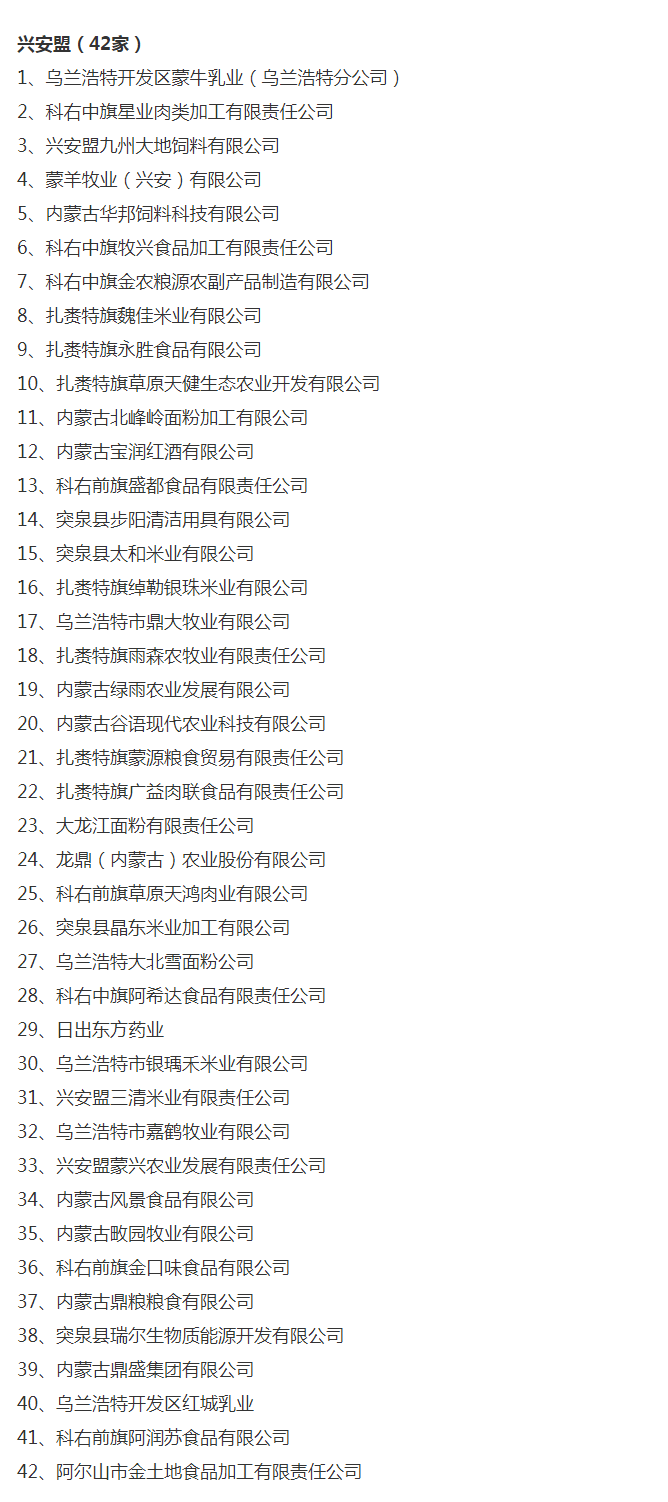 企業(yè)名稱:截止2017年末盟市級(jí)農(nóng)業(yè)產(chǎn)業(yè)化重點(diǎn)龍頭企業(yè)名單