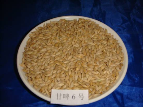 甘啤6號大麥屬二棱皮大麥,春性,生育期102天,中熟。幼苗半匍匐,莖稈彈性好,均勻株高80厘米。葉片開張角度大,冠層透光好,抽穗時株型松緊中等,穗全抽出,閉穎授粉,穗長方形。灌漿后期穗軸略有彎曲,穗層整潔,均勻穗長8.0厘米,穗莖節(jié)26.5厘米。疏穗型,單株有效分蘗2.5個,長芒,黃色鋸齒。穗粒數(shù)23粒左右,千粒重4550克,蛋白質含量8.710.5%,選粒率(2.5毫米)8593.0%。粒色淡黃,種皮薄,粒徑大,皺紋細膩,籽粒卵形,粉質;抗倒伏,抗干熱風,抗條紋病和其它大麥病害。