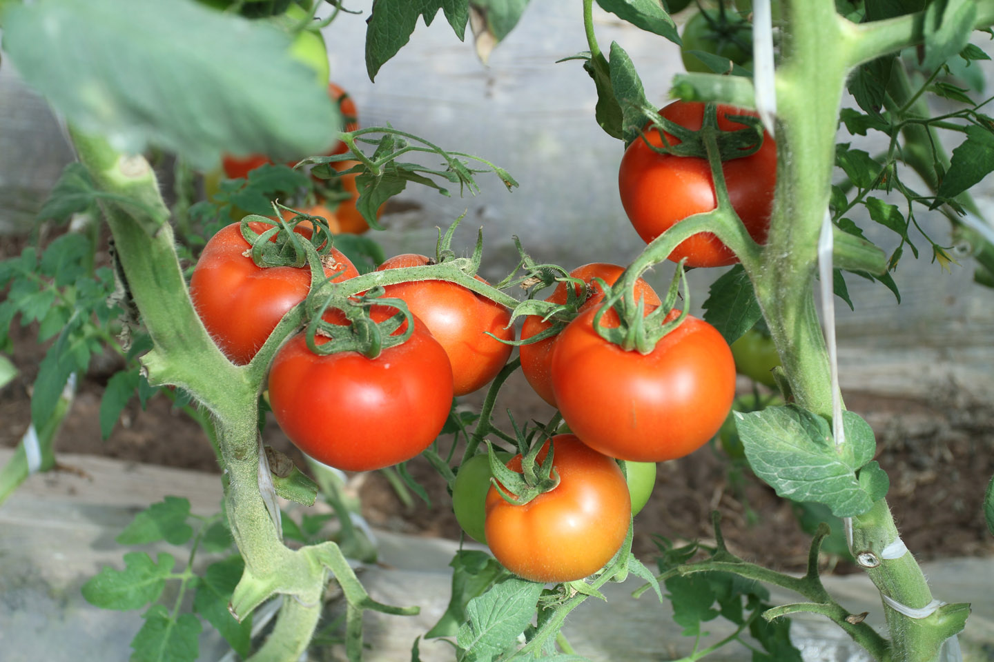 磴口茂欣公司的番茄、西紅柿以無(wú)污染、果肉厚、著色好、紅色素、 a酸、可溶性固形物含量高而著稱。內(nèi)蒙古茂欣農(nóng)牧業(yè)開發(fā)有限公司種植的西紅柿品種有大黃柿子、大紅柿子、小黃柿子、小紅柿子、小綠柿子,品種齊全。