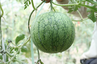 華萊士瓜盛產(chǎn)于內(nèi)蒙古磴口縣,產(chǎn)區(qū)地處烏蘭布和,為黃河沖積平原,土層深厚,土壤肥沃,含大量有機(jī)礦物質(zhì);年日照3000小時(shí)以上,氣候干燥,晝夜溫差大;水源泉豐富,年降水量160毫米左右,雖干旱少雨,但黃河穿區(qū)而過,灌溉方便。由于這種特質(zhì)的生長(zhǎng)環(huán)境,使得華萊士瓜具有獨(dú)特的品質(zhì)特性:皮色鮮艷、皮薄肉細(xì)、光滑潔潤(rùn)、甜之如蜜、汗液適可、軟脆適度,具有蜜桃、蘋果、荔枝、香蕉、芒果等多種味道,香氣濃郁、營(yíng)養(yǎng)豐富、香甜爽口,被譽(yù)為“瓜中仙品”。