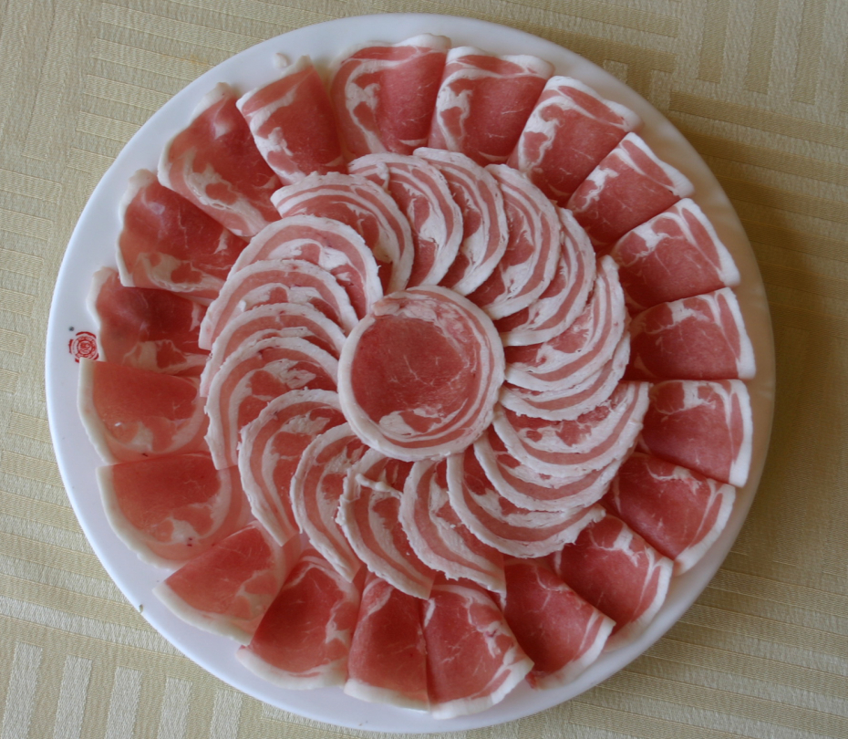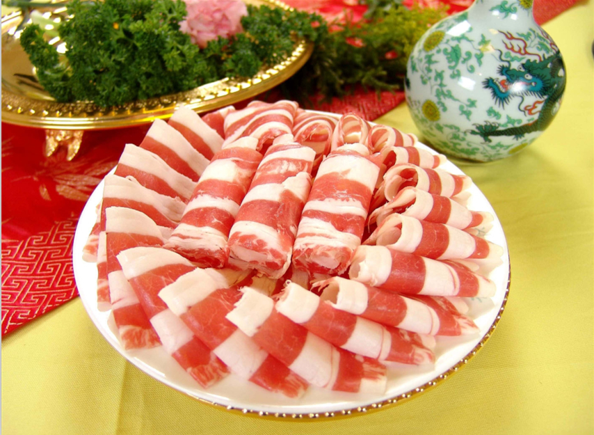 七、   杜泊羊肉卷:選用原料:采用南非引進(jìn)的杜伯羊,經(jīng)過雜交改良的品種。肉中脂肪分布均勻,胴體品質(zhì)高。經(jīng)選修之后,全部按照肥瘦搭配制成羊肉卷。一涮即熟、就涮不老。