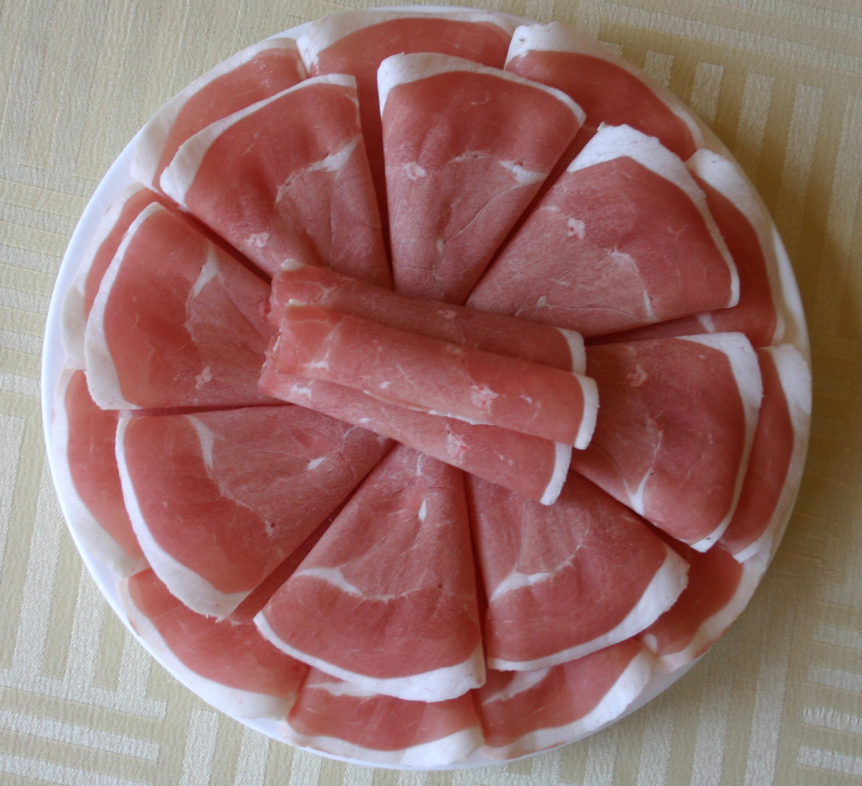 十四、精卷:選用原料:精選后的上腦、前腿、后腿,按肉紋方向一致、肥瘦搭配均勻后,卷制而成。外表美觀,上盤后漂亮。
