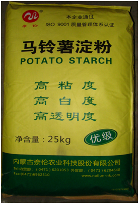 奈倫牌馬鈴薯淀粉介紹:奈倫牌馬鈴薯淀粉嚴格執(zhí)行歐洲質(zhì)量標準,以其高白度、高粘度、高純度、高透明度、低蛋白、低酸性、低糊化溫度及良好的成膜性抗凝沉性等理化指標,成為各類淀粉中的上等佳品??捎糜谌榛瘎⒃龀韯?、穩(wěn)定劑、膨松劑、賦形劑等。適用于食品、制藥、化工、乳業(yè)等工業(yè)領域。