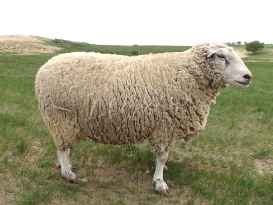 澳洲美利奴羊(簡稱“澳美”羊),是毛肉兼用羊,原產(chǎn)于澳大利亞和新西蘭。分細毛型、中毛型和強毛型,澳美羊產(chǎn)毛量高,羊毛品質(zhì)優(yōu)良,產(chǎn)肉性能好,繁殖率高,適應(yīng)性強。被毛白色,體質(zhì)結(jié)實,結(jié)構(gòu)勻稱,胸深體寬,背腰平直。后軀肌肉豐滿,腿短。公羊頸部有13個橫皺褶,母羊有縱皺褶。腹毛好。成年公羊體重68115公斤,母羊55.070公斤;成年公羊剪毛量1013公斤,母羊58公斤。羊毛長度7.51 1.5 厘米,細度6070支,凈毛率45%55%。公司現(xiàn)存欄該品種羊5000余只。