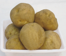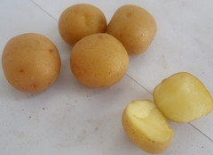FAVORITA(費(fèi)烏瑞它)1981年由國家農(nóng)業(yè)部種子局從荷蘭引入,山東省農(nóng)業(yè)科學(xué)院蔬菜花卉所引入山東栽培,取名“魯引1號”,1989年天津市農(nóng)業(yè)科學(xué)院蔬菜花卉所引入,取名“津引8號”,又名“荷蘭薯”、“荷蘭七號”、“荷蘭15”,為我國主栽早熟品種之一,該品種出苗后60—70天即可收獲。 [特征特性]該品種早熟,株型直立,株高約60cm左右,莖桿粗壯,分枝少,葉片肥大,葉緣波狀,花淡紫色;結(jié)薯集中,薯塊膨大迅速,長橢圓形,芽眼淺,黃皮黃肉,表皮光滑,食味好,適合加工和出口創(chuàng)匯,在香港及東南亞各國極為暢銷;抗馬鈴薯Y病毒,對A病毒免疫;淀粉12.4%—14%,還原糖0.03%。植株易感晚疫病。塊莖感晚疫病和環(huán)腐病。輕感青枯病、退化快。產(chǎn)量高,畝產(chǎn)2000kg,高產(chǎn)可達(dá)3000kg以上。 [適宜范圍]該品種適宜性較廣,黑龍、遼寧、內(nèi)蒙古、河北、北京、山東、江蘇、廣東、廣西、貴州、四川等地均有種植,是適宜出口的品種。