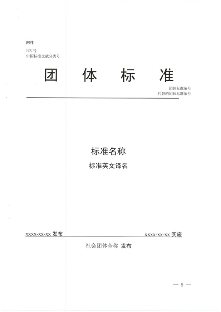 團(tuán)體標(biāo)準(zhǔn)的封面格式應(yīng)當(dāng)符合要求,具體格式見附件。